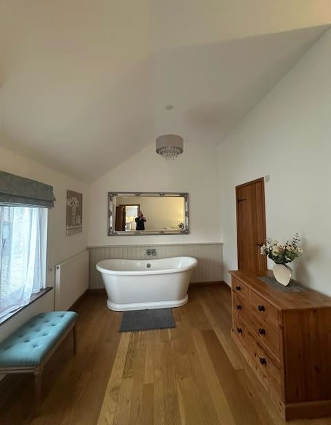 large free standing bath and a wood burner an ideal property for a romantic getaway for two.