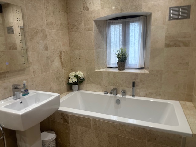 The stylish modern bathroom is on the ground floor and has a bath, separate shower, washbasin & WC. For your complete freedom and relaxation the cottage has a private garden with south facing decking, an 8 seater Hot Tub and garden furniture.