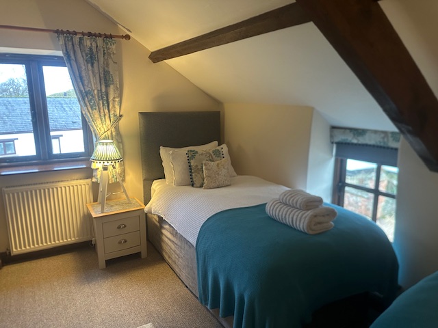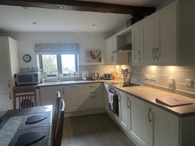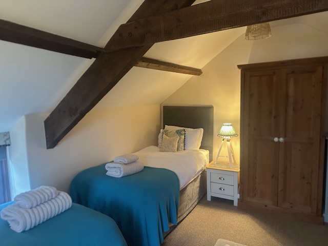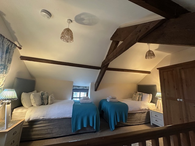 The Cider Barn is a spacious self-catering cottage, sleeping 6 people. There is a beautifully appointed open plan kitchen with wonderful far reaching views of the Somerset countryside. The tastefully furnished sitting room features exposed beams and a log burner. Two bedrooms are on the ground floor both with king sized beds, one bedroom is next to the family bathroom, the other has its own wash hand basin and toilet. A third twin room is on the upper floor